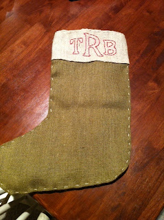 T's stocking! We are ready for Christmas! 102 days until Santa fills our newly crafted stockings!